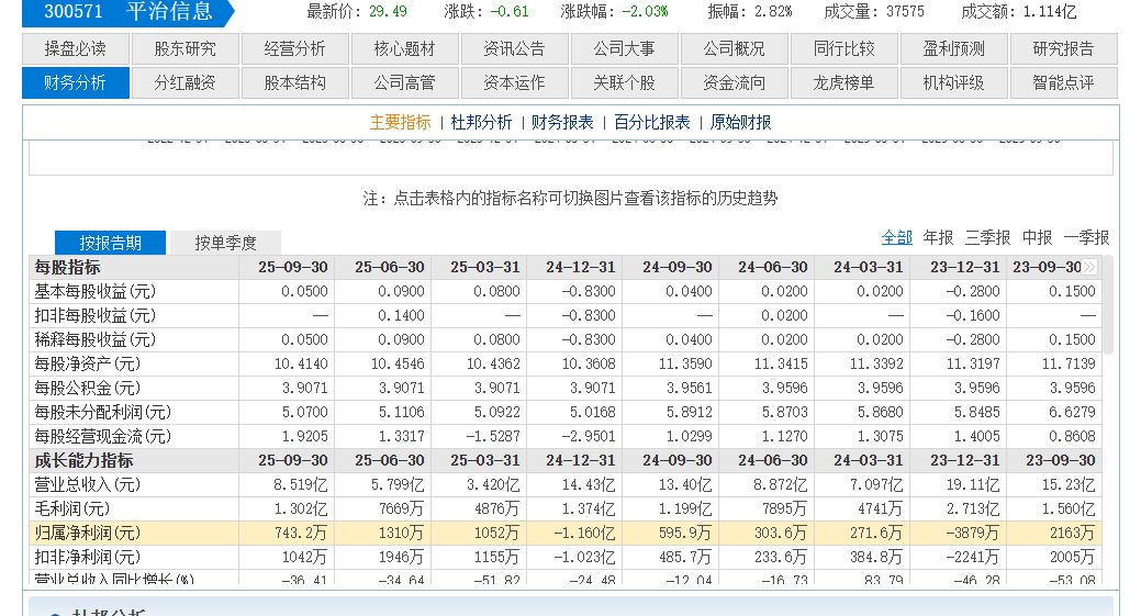 本次4.89亿元的中标金额若最终确认,将是平治信息2024年全年营业收入14.43亿元的33.9%,是公司2025年第三季度单季营收2.72亿元的179.9%。尽管2025年前三季度公司整体营收为8.52亿元,同比下降36.41%,但算力服务业务已成核心增长极。