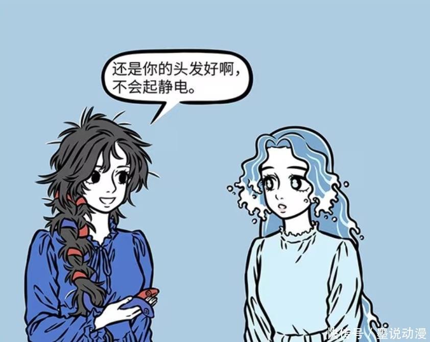 女娲羡慕妈祖,觉得还是她的头发好,不会起静电,看起来平平整整。妈祖的头发毕竟是海水组成,确实不会受到静电影响,所以冬天也可以美美的。不过如果到寒冬,妈祖的头发也会被冻结,这样也会很不方便。